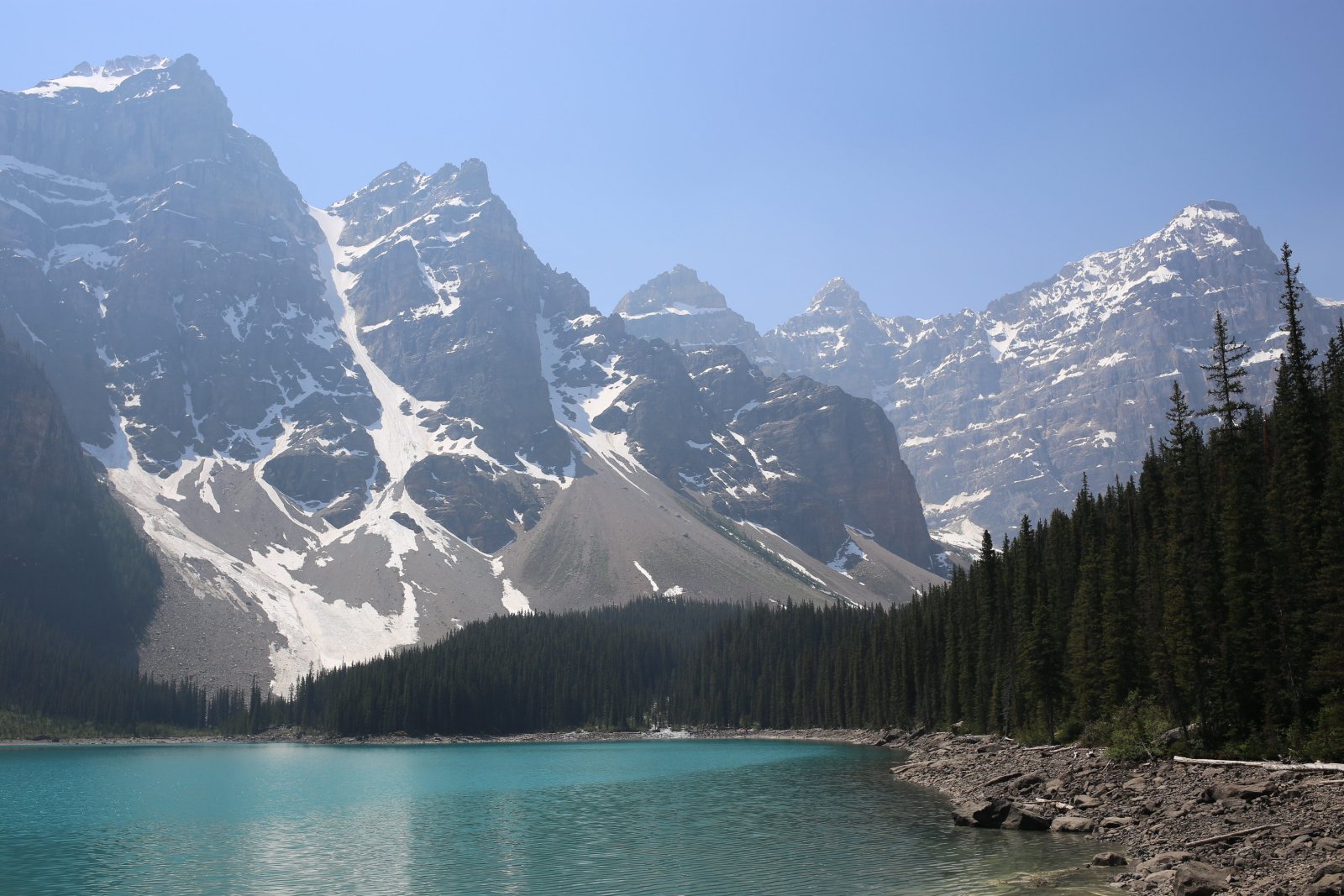| We caught the shuttle to Lake Morraine. Here's our first look at the lake. | ||||||
