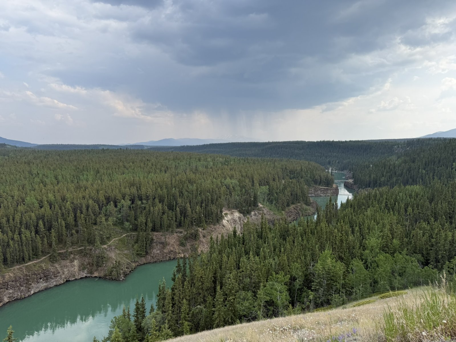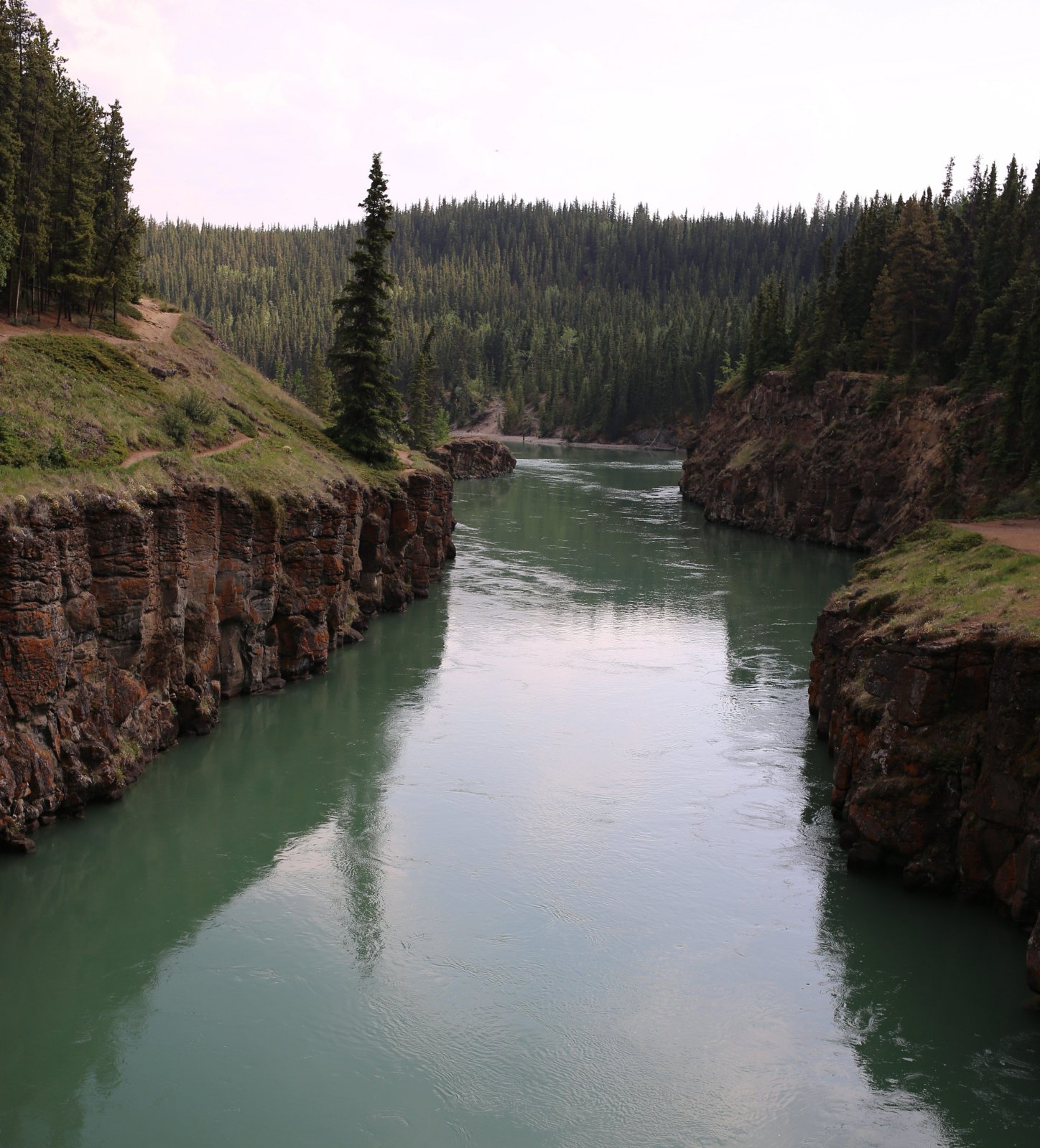 Looking down at Miles Canyon and the Yukon River.