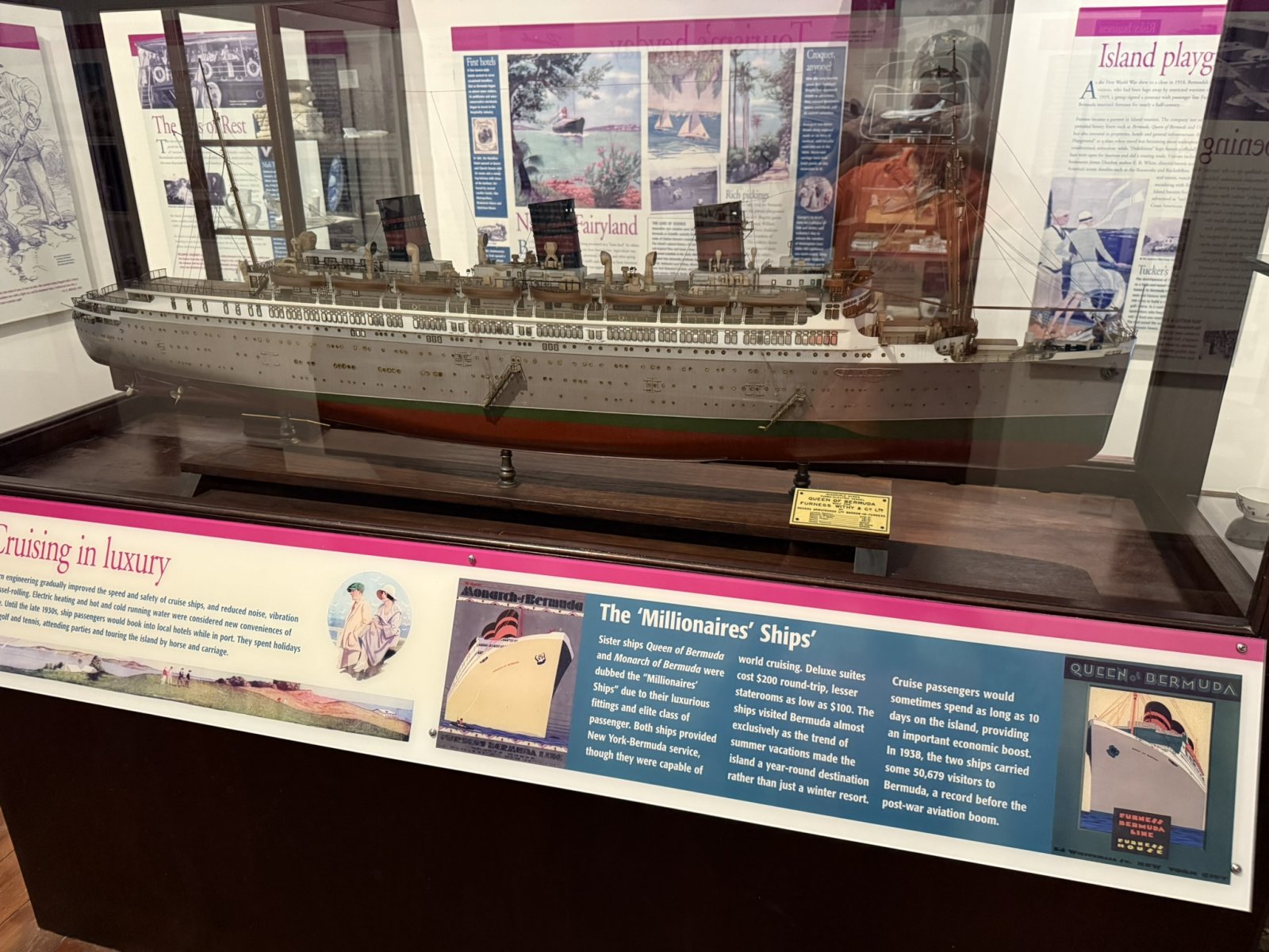 | A model of a "Millionaire Ship". Two such ships carried well-to-do passengers to and from Bermuda before the advent of widespread commercial aviation. | ||||||
