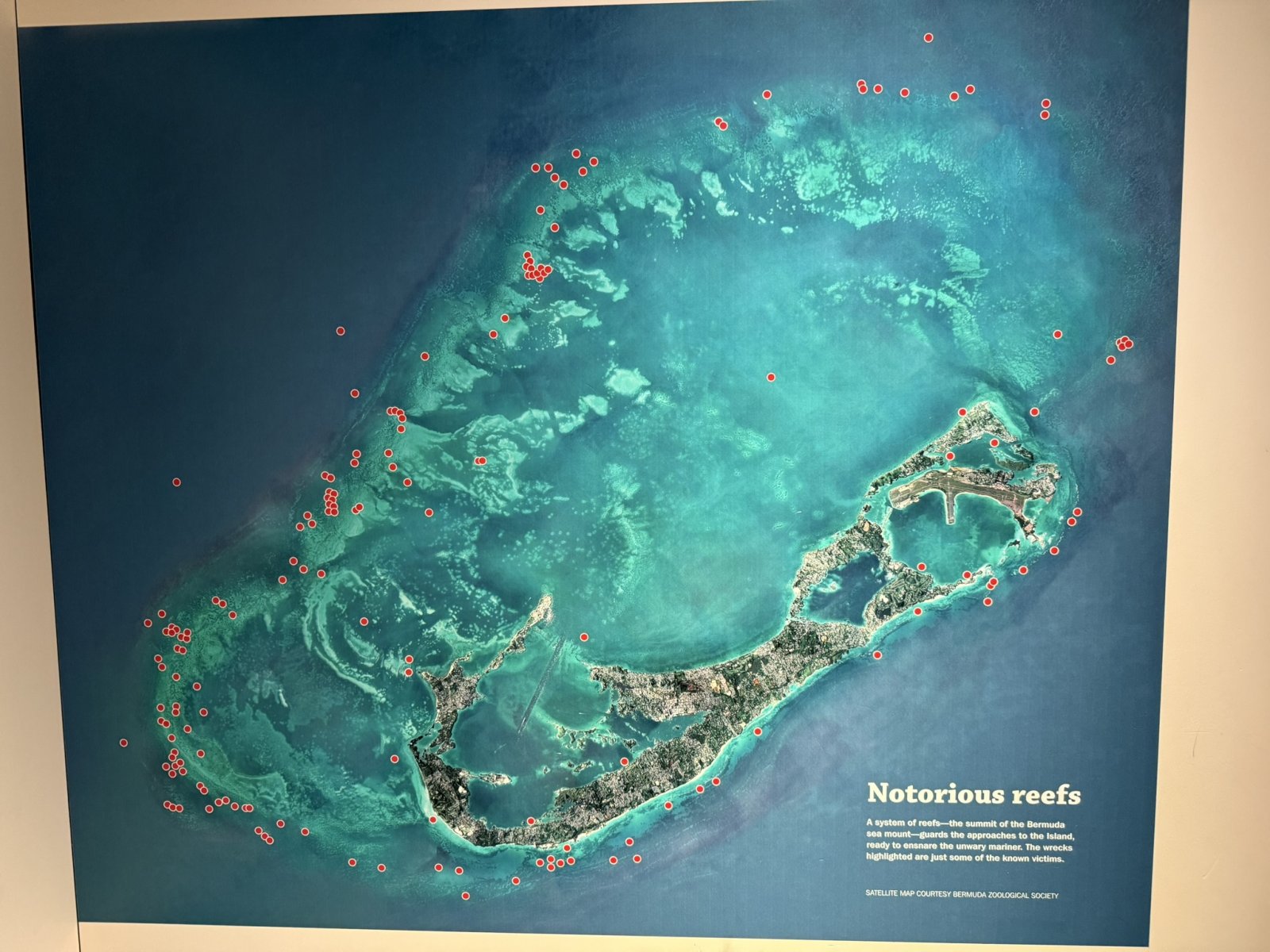 This satellite map shows why the Vision of the Sea approached Bermuda from the east. I guess threre are no passages through the reef for a big ship from the west and north. There is only the one passage just north of Fort St. Catherine's.