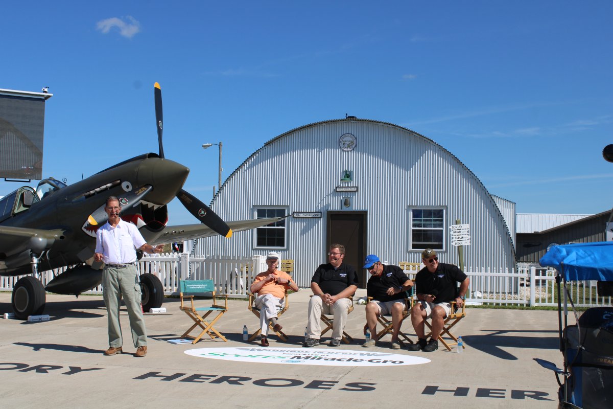 | The next session concerned a Curtiss P-40 Warhawk and Vought F4U Corsair. Again, it was supposed to be a Mosquito but the Mosquito was having a hard time flying out from Virginia Beach and would not arrive until later in the week. Whether it ever made it to the Show at all I don't know. The panelists included Jerry Yagen, the owner of the Military Aviation Museum's collection at Virginia Beach, the MAA's curator, and the pilots who flew the two warbirds to AirVenture. | ||||||