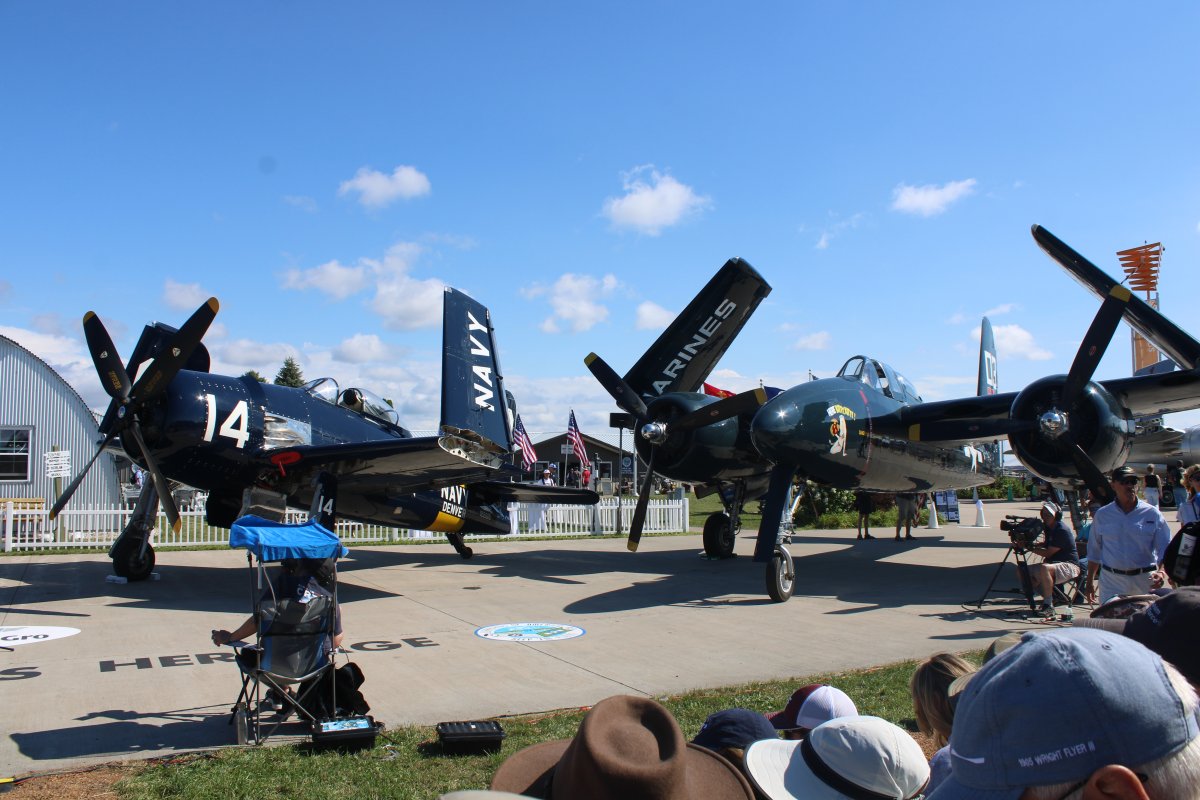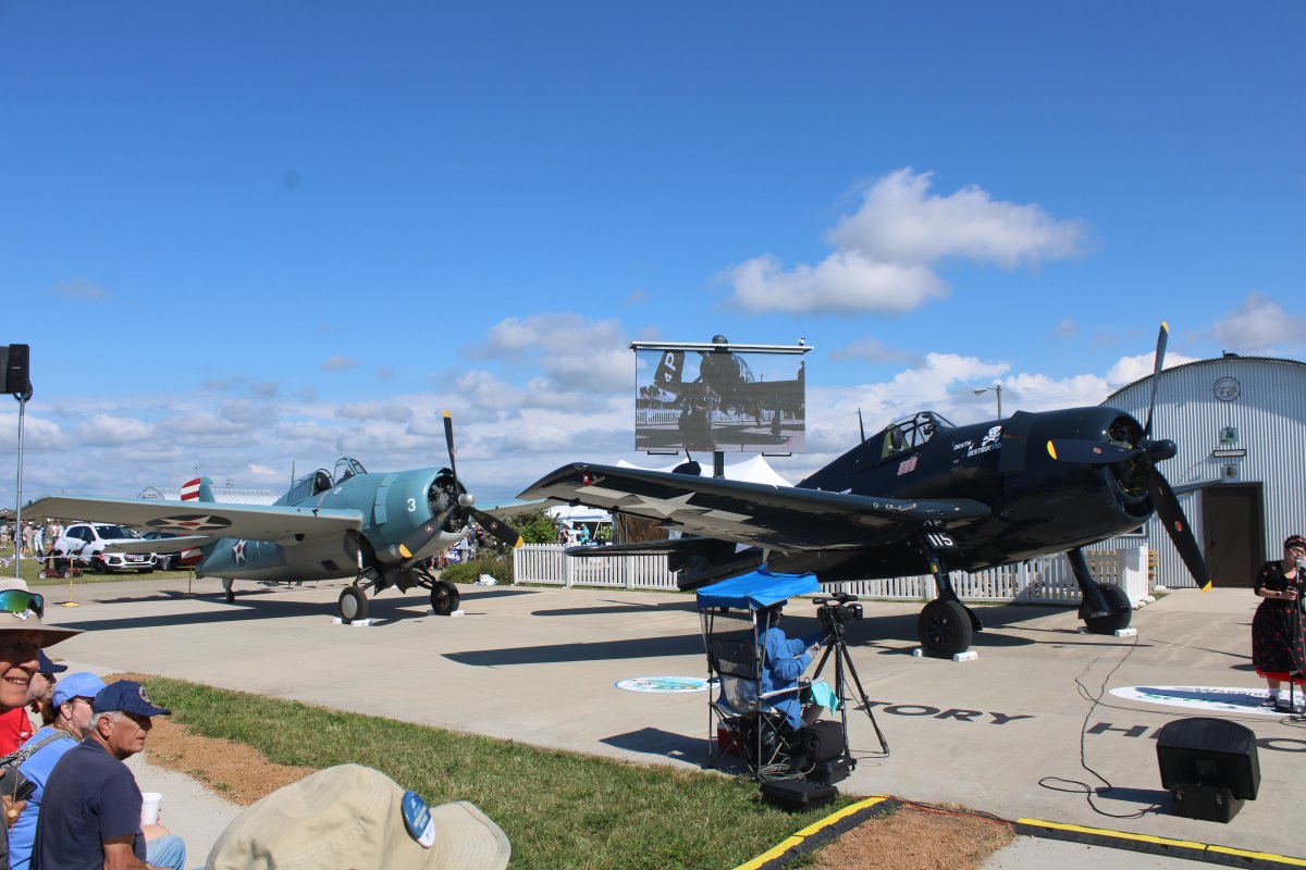 | It was interesting to hear the pilots and historian talk about flying the aircraft and its history. The Corsair was faster than the Hellcat and was the speed was useful late in the war in running the kamikazes down. | ||||||