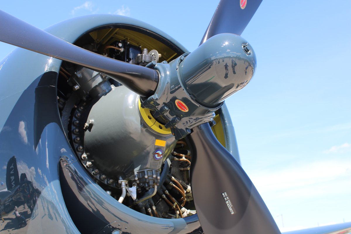 | A good look at the Hellcat's big Pratt & Whitney R-2800 Double Wasp radial engine, the same powerplant used for both the Corsair and the Republic P-47 Thunderbolt fighters. | ||||||